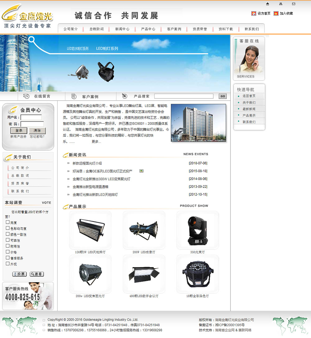 湖南金鷹燈光實(shí)業(yè)有限公司,專業(yè)從事數(shù)字換色器、電子顯示屏及舞臺(tái)燈具的開發(fā)、生產(chǎn)和銷售,是中國文藝演出物資協(xié)會(huì)會(huì)員, 公司以