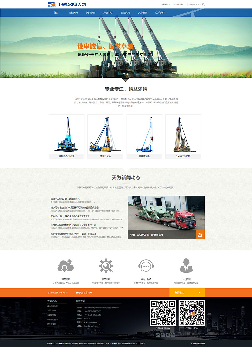長沙天為工程機(jī)械制造有限公司創(chuàng)始于2005,是一家專注于研發(fā)、生產(chǎn)制造和銷售液壓靜力壓樁機(jī)、圓盤造球機(jī)、長螺旋鉆機(jī)、SMW工法鉆機(jī)、液壓打樁錘及其錘架等樁工機(jī)械的現(xiàn)代股份制民營企業(yè)。10多年來致力于為客戶提供質(zhì)量可靠穩(wěn)定、節(jié)能、操作便捷、性價(jià)比高的產(chǎn)品,和專業(yè)、高效、快捷的服務(wù),在行業(yè)內(nèi)獲得良好的聲譽(yù)。