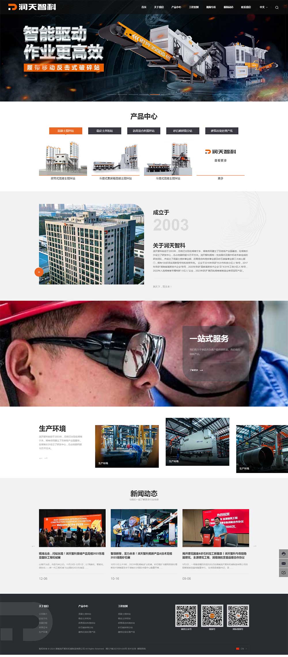 潤(rùn)天智科始創(chuàng)于2003年,目前已分別在湖南寧鄉(xiāng)、湖南岳陽(yáng)建立了百畝級(jí)產(chǎn)業(yè)園基地,在湖南長(zhǎng)沙設(shè)立了研發(fā)中心,總占地面積超10萬(wàn)平方米。潤(rùn)天智科擁有一支由國(guó)內(nèi)及國(guó)外機(jī)電專家組成的研發(fā)團(tuán)隊(duì),并成立了混凝土攪拌事業(yè)部、瀝青混合料攪拌事業(yè)部及砂石裝備事業(yè)部三大核心部門,擁有100多項(xiàng)實(shí)用新型專利和發(fā)明專利。