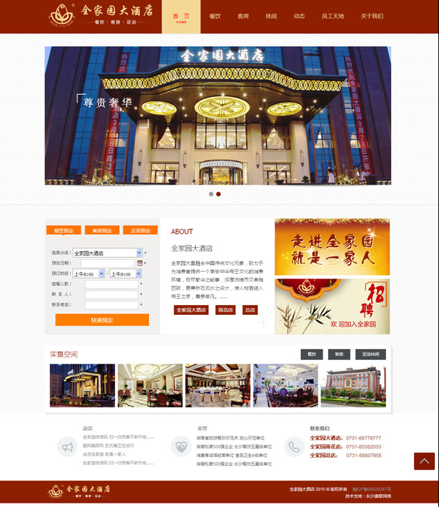 全家園大酒店按五星級(jí)標(biāo)準(zhǔn)建造的集客房、餐飲、康樂為一體的綜合型高端商務(wù)精品酒店 。網(wǎng)站上不僅展示了全家園大酒店,還展示了全家園雨花店、老店,及全家園實(shí)業(yè)旗下的四一農(nóng)業(yè)、濱江會(huì)所等??蓪?shí)現(xiàn)在線的餐飲預(yù)定、客房預(yù)定、足浴預(yù)定,及行政管理中的人才招聘等。