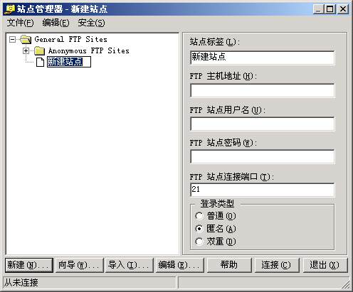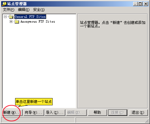 1、打開FTP,彈出“站點管理器”,點擊左下面的"新建",如下圖界面: