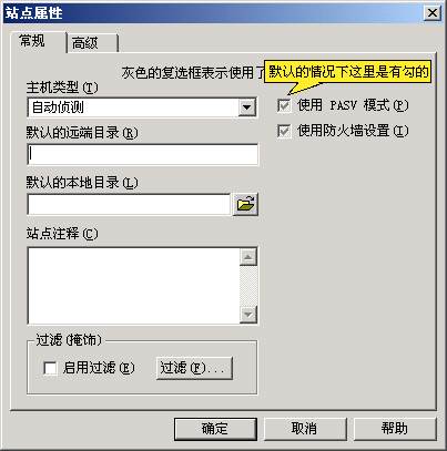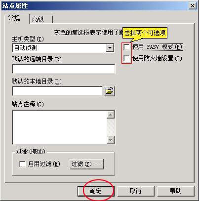 5、在這個對話框中,選"常規(guī)"標(biāo)簽,取消"使用 PASV 模式"可選項。接著按“確定”,界面顯示如下: