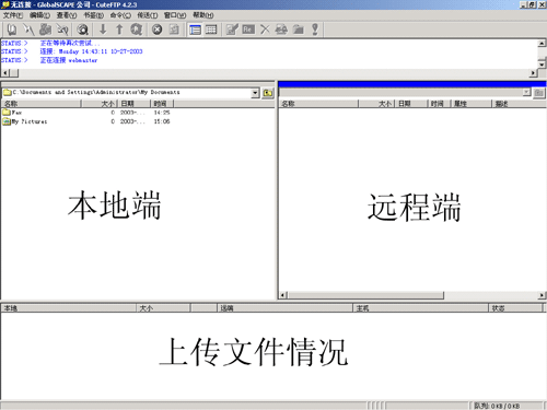 左邊是本地端,右邊是遠(yuǎn)程端,這時用戶可以由本地端上傳文件到遠(yuǎn)程端了,或者從遠(yuǎn)程端下載文件到本地端了。