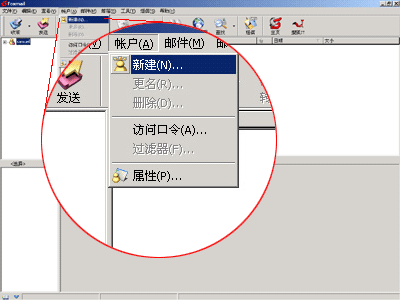 1、打開(kāi)Foxmail,點(diǎn)擊菜單欄中的“帳號(hào)”,在下拉菜單中選擇“新建”,界面如下: