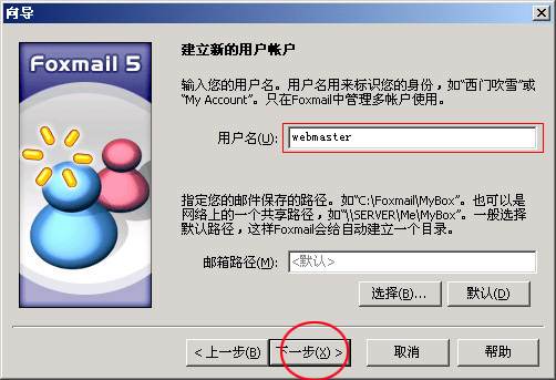 3、輸入自己的用戶(hù)名(如webmaster),接著按"下一步",界面如下: